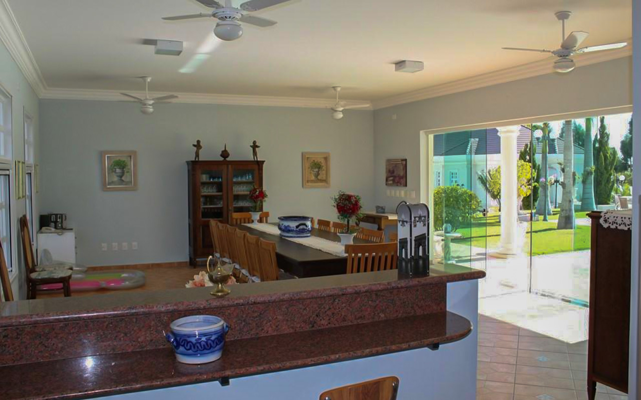 São 1178 m² bem distribuídos, com bela escada, 7 dormitórios, sendo 5 suítes, armários, Home Theater, Banheiro de empregada, Churrasqueira, Copa, Cozinha, Despensa.